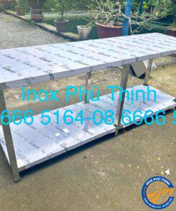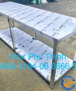 Mẫu bàn 2 tầng phẳng inox