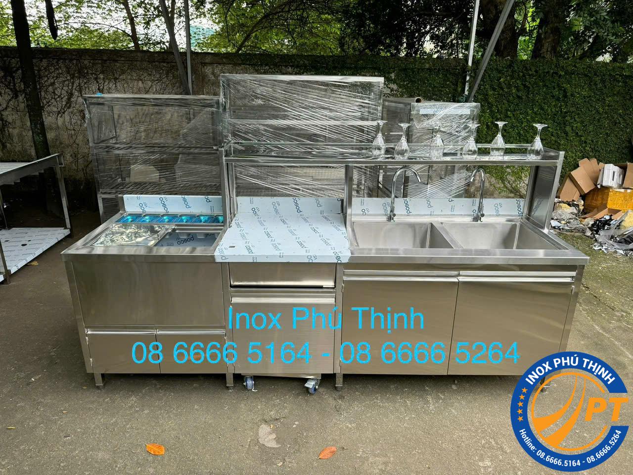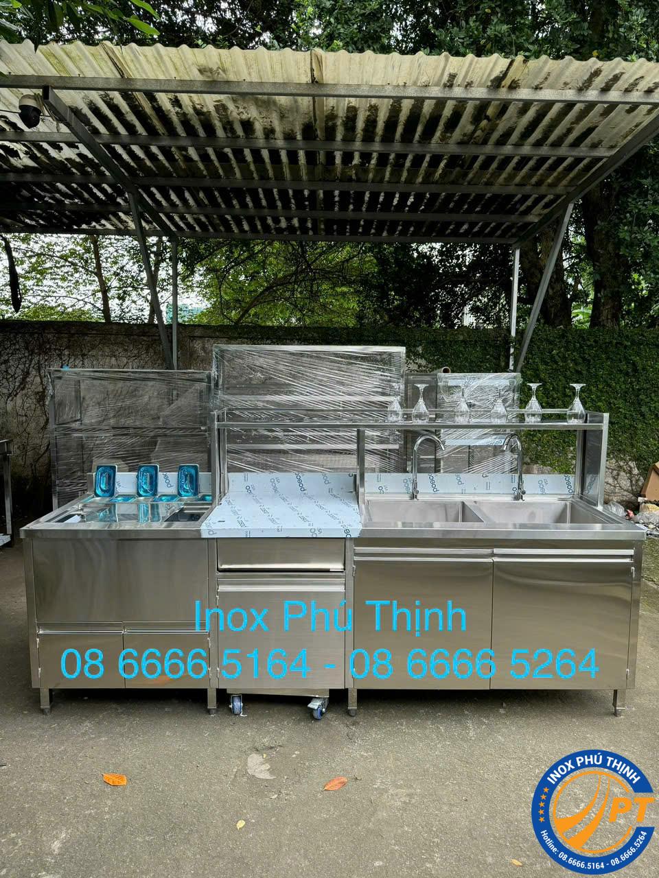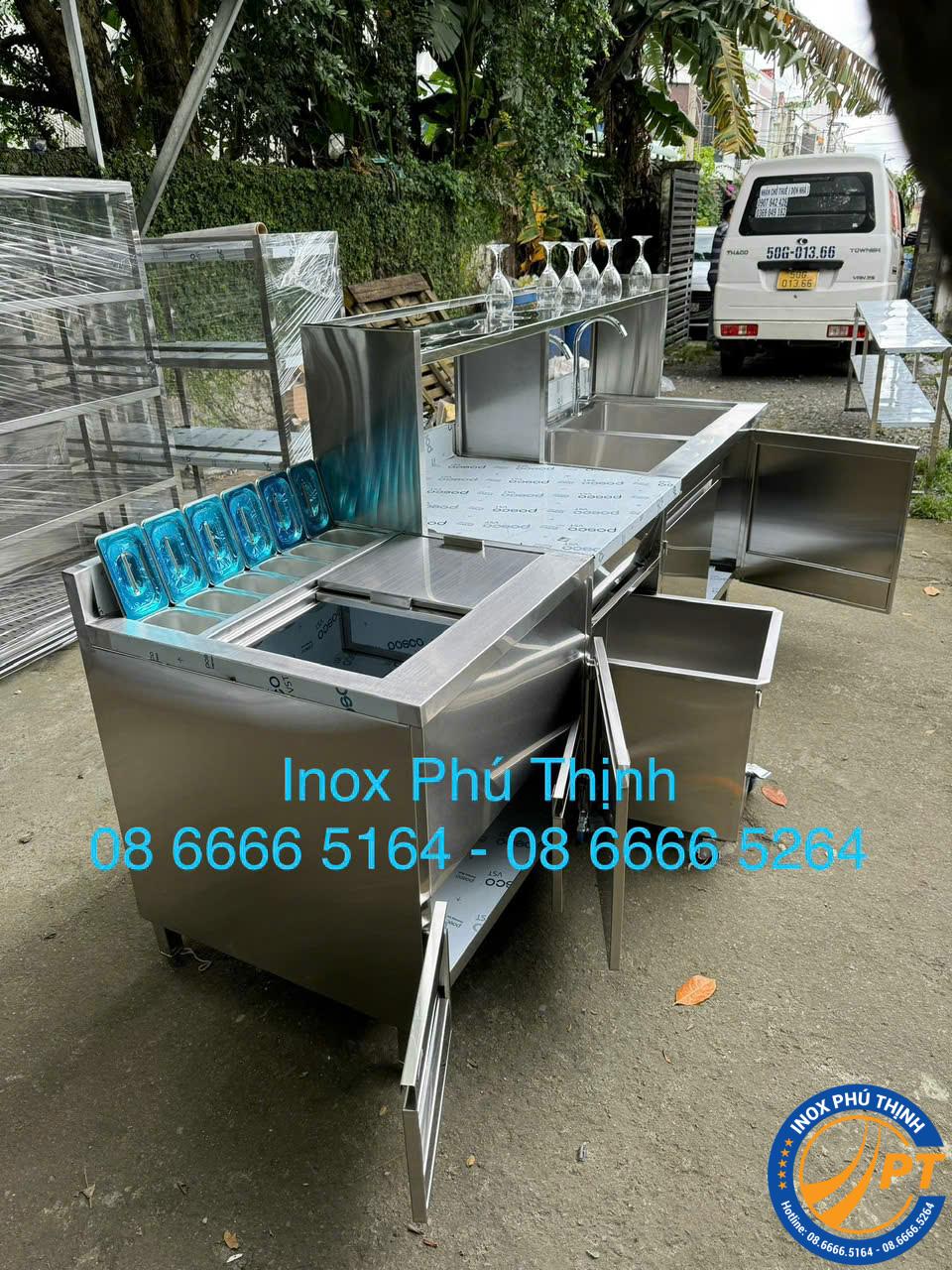 Tích hợp đa năng: Chậu rửa, thùng đá, kệ gia vị, máy pha.