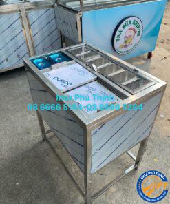 THÙNG ĐÁ CHÂN ĐỨNG 8 KHAY TOPPING KÈM NẮP KÍNH MỞ
