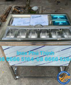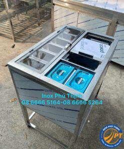 Thùng đá inox kèm khay topping có chân đứng là sản phẩm có thể đặt tách biệt, dùng để đựng đá chống tan chảy đá 2-3 ngày và giữ lạnh được các khay thạch topping được làm bằng inox 304 cao cấp, đảm bảo vệ sinh an toàn thực phẩm trong quá trình sử dụng.