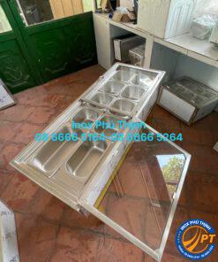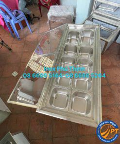 THÙNG ĐÁ INOX ÂM BÀN ƯỚP LẠNH KHAY TOPPING KÈM NẮP KÍNH MỞ