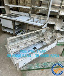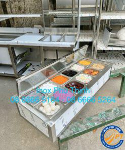 Bố trí 12 khay 1/6 (1.5l) trên bề mặt thao tác có nắp kính gập có thể nhìn thấy các loại thạch topping bên trong khay