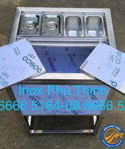 THÙNG ĐÁ INOX CHÂN ĐỨNG KÈM 4 KHAY TOPPING