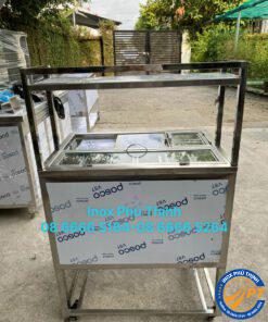 THÔNG SỐ KỸ THUẬT THÙNG ĐÁ XE ĐẨY 8 KHAY TOPPING NẮP KÍNH KÈM KỆ TRÊN 1 TẦNG PHẲNG