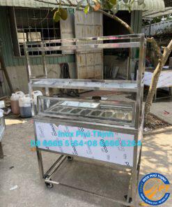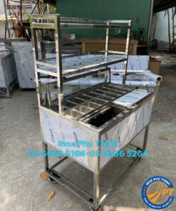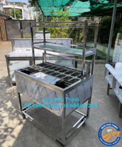 THÔNG SỐ KỸ THUẬT THÙNG ĐỰNG ĐÁ INOX XE ĐẨY 16 KHAY TOPPING CÓ KỆ PHẲNG TRÊN 2 TẦNG