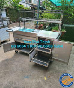 Bao gồm 6 khay topping 1/9 kích thước khay: 162x176x100mm thể tích 1.5l, phía trước có hộc đựng các loại chai siro, sirup…